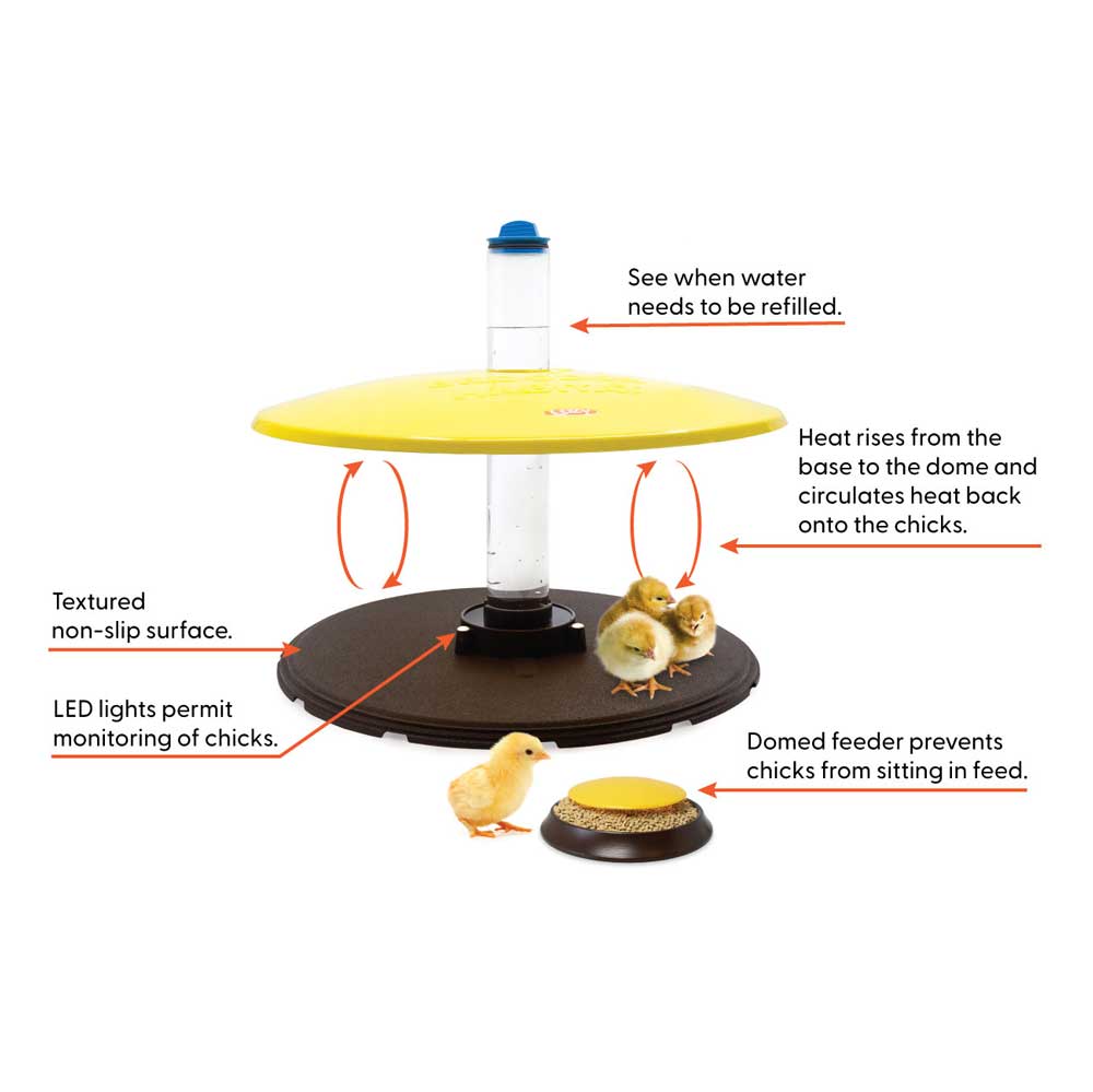 Adjustable Dome: The adjustable dome allows heat to rise and recirculate, keeping the chicks warmer for longer.